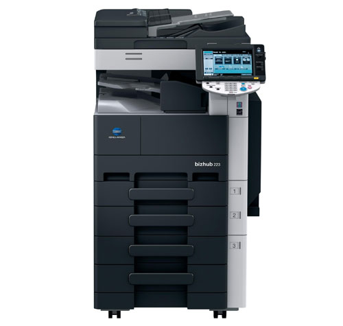 You can count on Konica Minolta laser multifunction printers to keep your information moving. Designed for small to medium businesses - the bizhub 223 prints, copies, scans and faxes. Watch your productivity soar as you print and copy in high-resolution B&W at up to 22 pages per minute or scan in both color and B&W at up to 70 ppm. Packed with solutions to address all your business needs, laser multifunction printers from Konica Minolta are the right choice for your business.